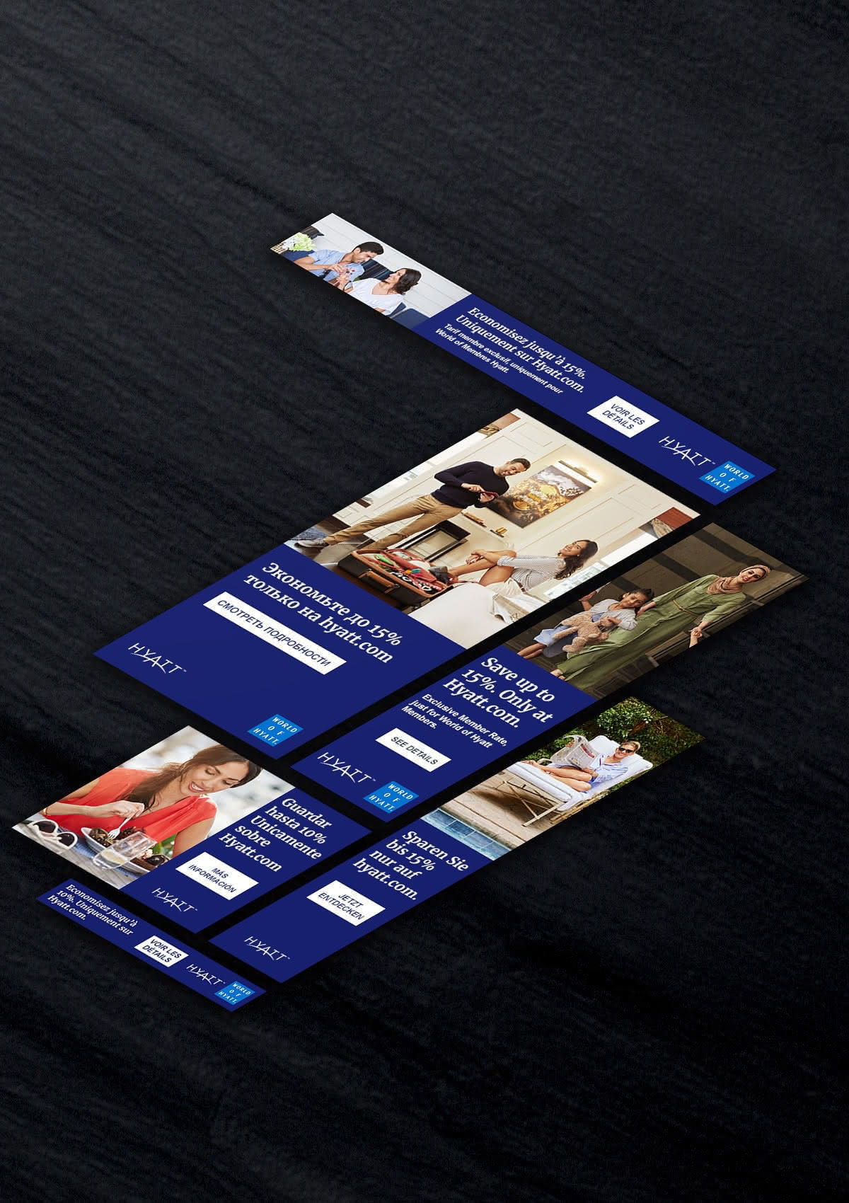 These creatives have been developed under the creative achievement to have a dynamic messaging inside for the different user groups. Due to the case, these banner been dynamic setup to change the message and visual elements, so they work with several languages such as english, german, french, Spanish, Russia, etc. This work has been established for the Media-Agency Publicis Germany.