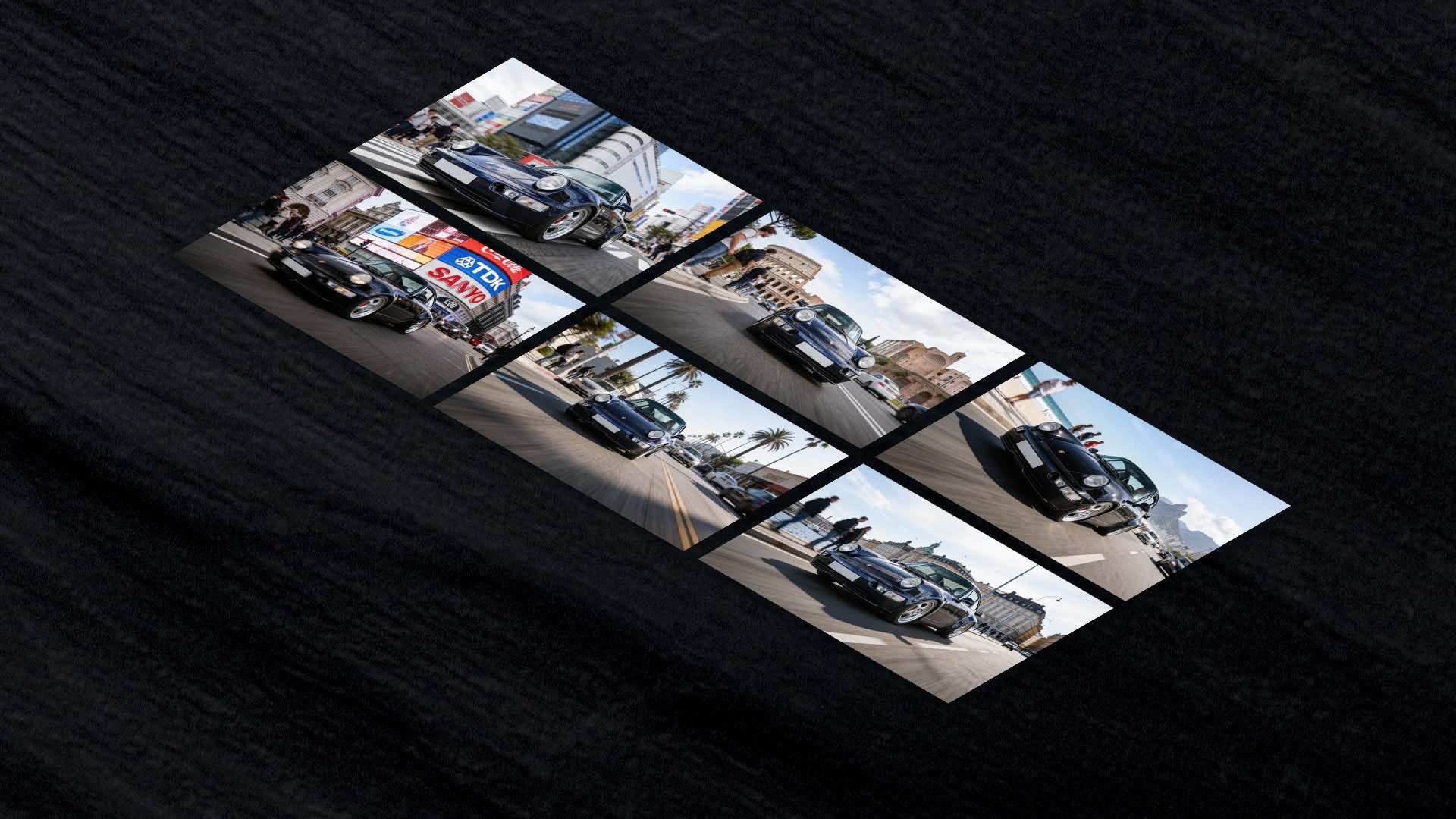For a client presentation, I developed a scalable creative system for Porsche, combining AI-enhanced photography and video. The iconic Porsche 964 is placed in multiple global locations (Beijing, Berlin, Tokyo, Seoul, etc.) across different time zones, paired with generic interior shots to hyper-localize creatives based on the user’s location. The end-video`s are edited to the users location.