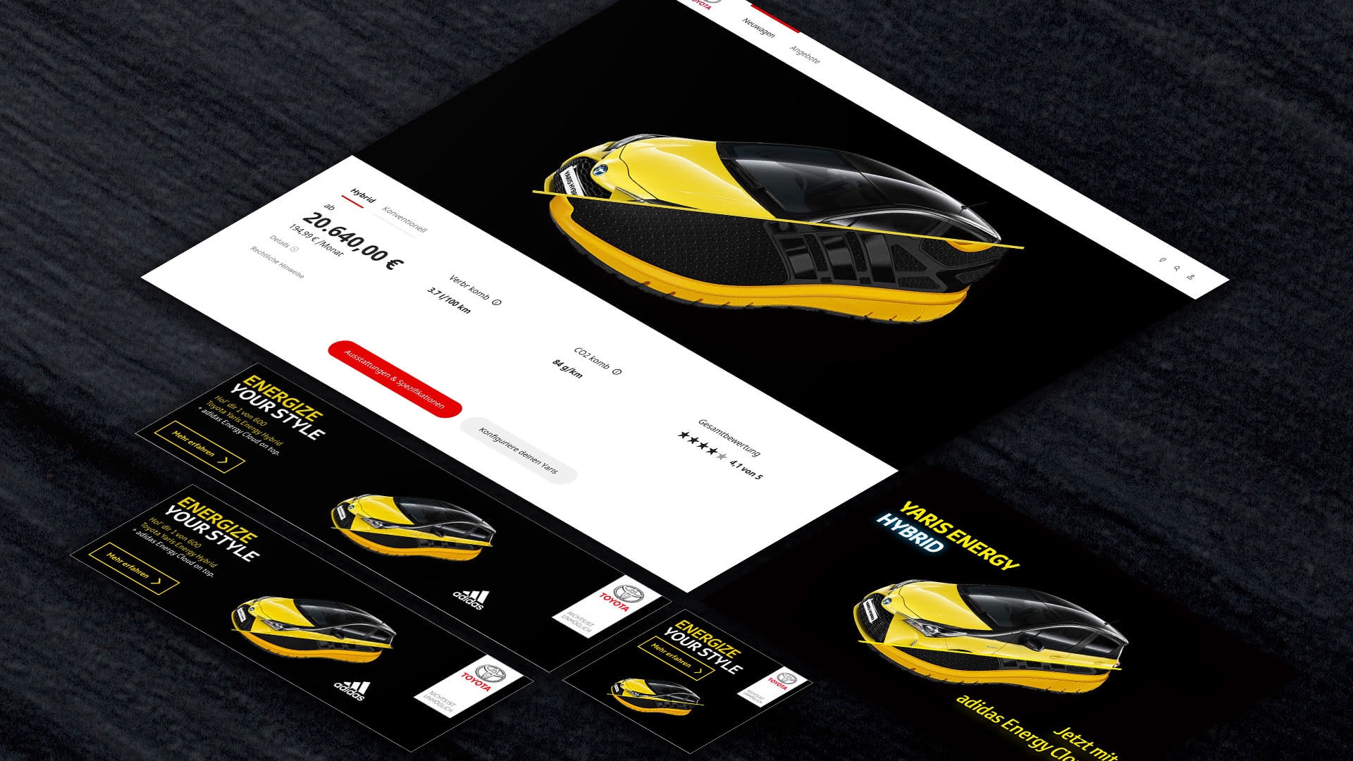 My role as a Digital Art Director was the creation of several Digital Banners, Social Media Ads, Newsletters, Landing-Pages for the complete range of Toyota and Lexus. Additonal Campaings such as the "Style Selection" and "We Choose Hybrid" Campaign, next to Creation for Toyota and Lexus Dealerships.