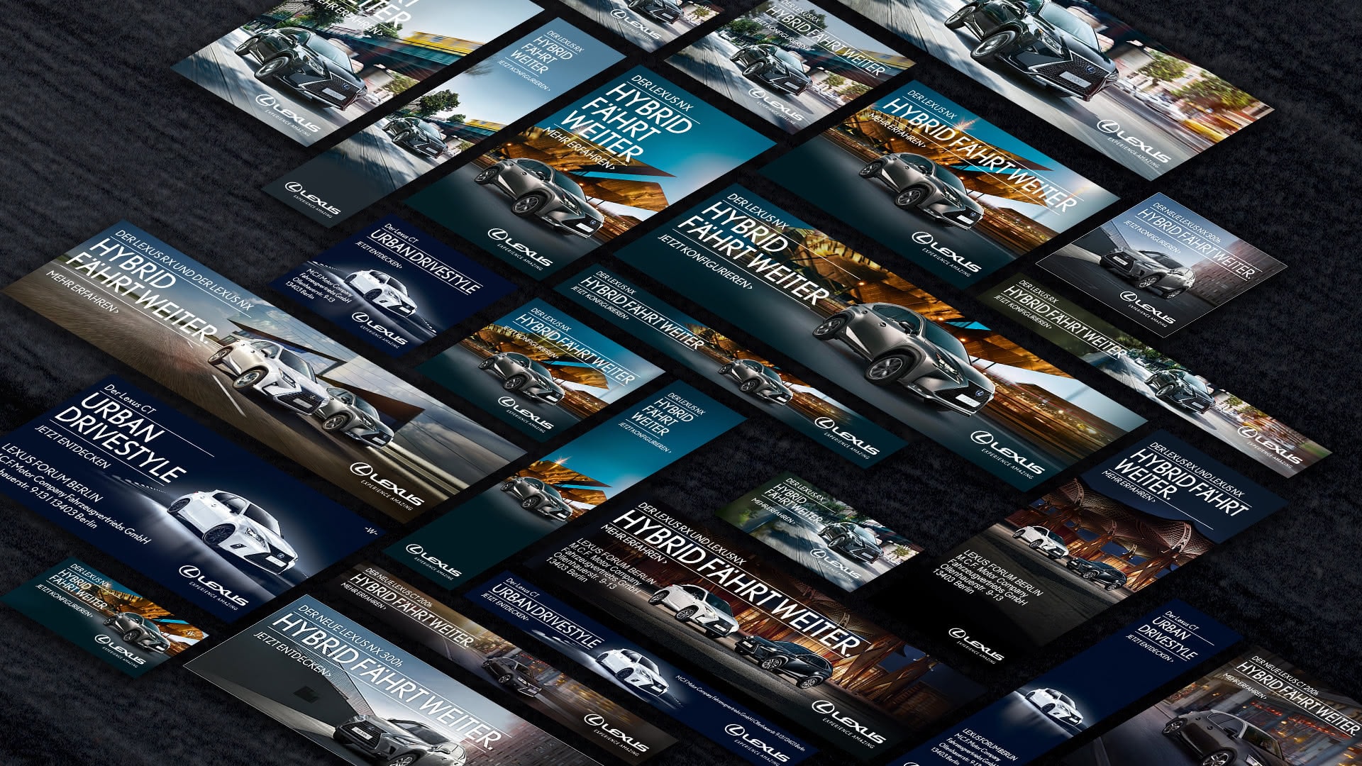 My role as a Digital Art Director was the creation of several Digital Banners, Social Media Ads, Newsletters, Landing-Pages for the complete range of Toyota and Lexus. Additonal Campaings such as the "Style Selection" and "We Choose Hybrid" Campaign, next to Creation for Toyota and Lexus Dealerships.